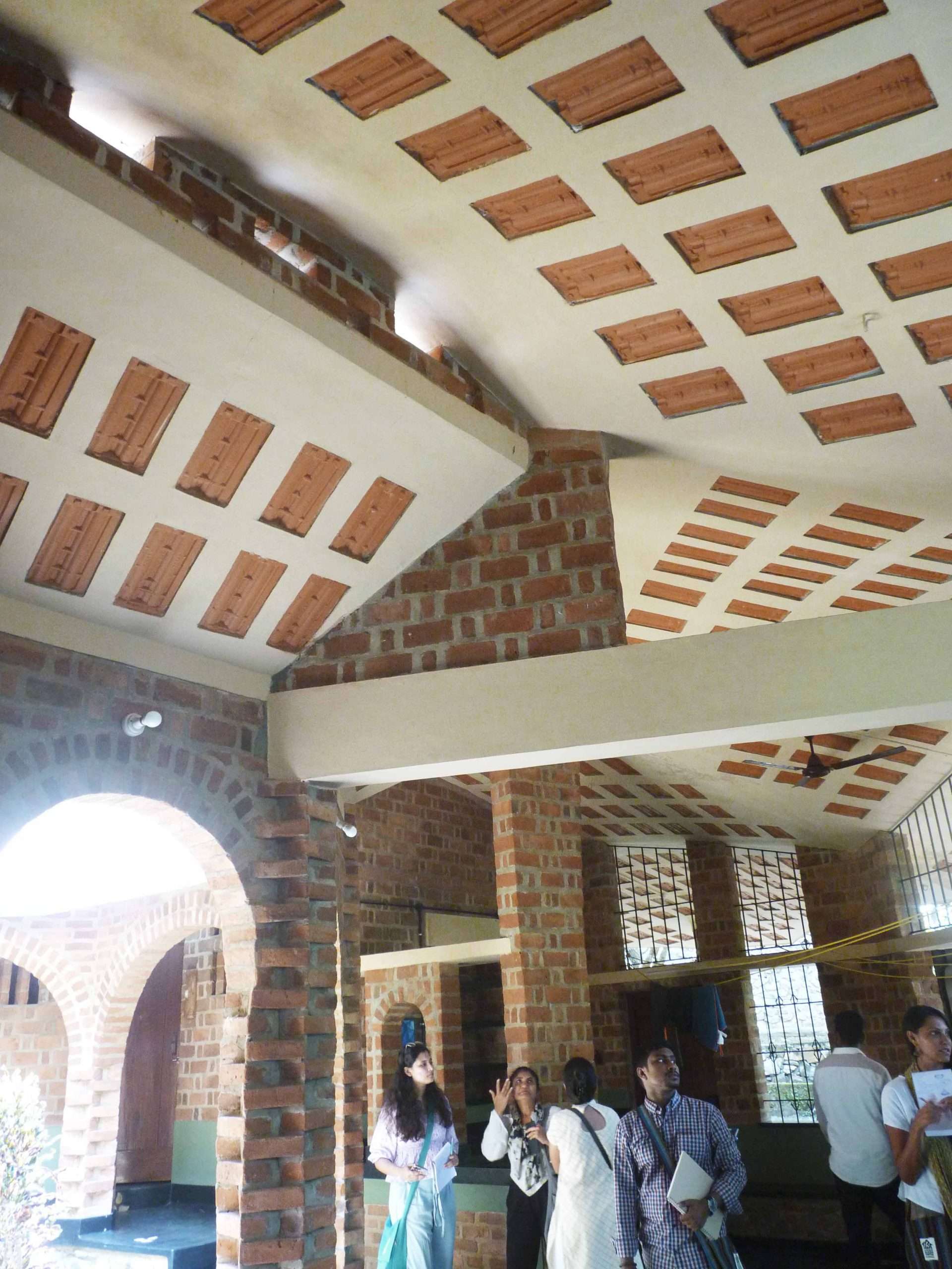 Amidst the hectic schedule and tiresome weather, we visited some masterpieces designed by Laurie Baker. We explored the Loyola Chapel first, a shared chapel of the high school and post graduate complex of The Loyola complex. Upon entering the chapel, the brickworks and the wide cavity double-wall with cross bracings caught our eyes. Diffused light coming from an edge of the roof created a spiritual and calm space. The visit to Center for Development Studies (CDS) revealed to me the extent to which Baker loved working with bricks.