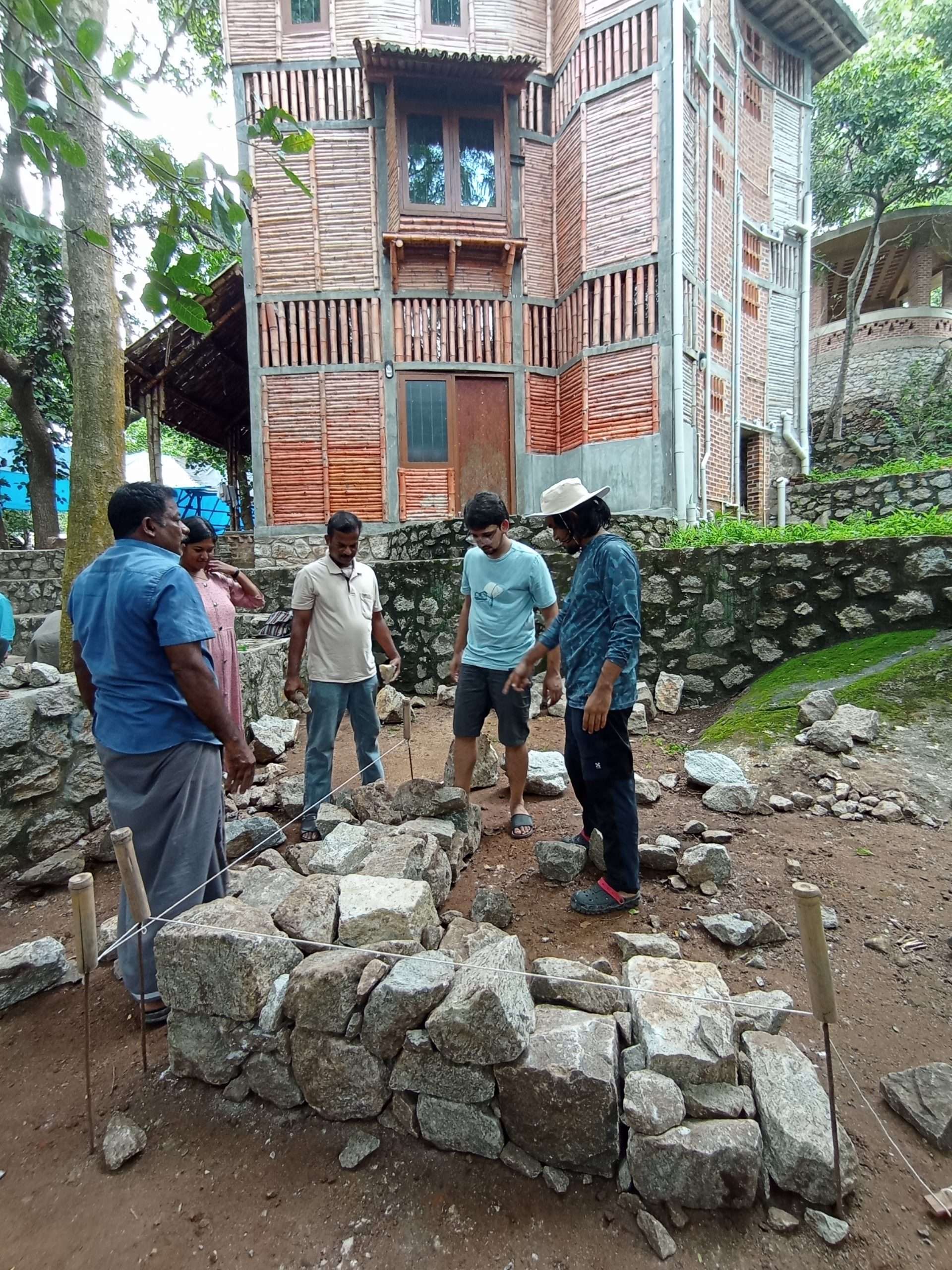 We also worked at some of the construction sites of COSTFORD (Center of Science and Technology For Rural Development) the voluntary organization where Baker was the master architect of and carried out many of his later projects. The architects and engineers of COSTFORD who are currently practicing the methods of Baker, gave valuable lectures on how to reduce the cost of construction, how to minimize material and mortar usage which helps to achieve greater thermal efficiency.