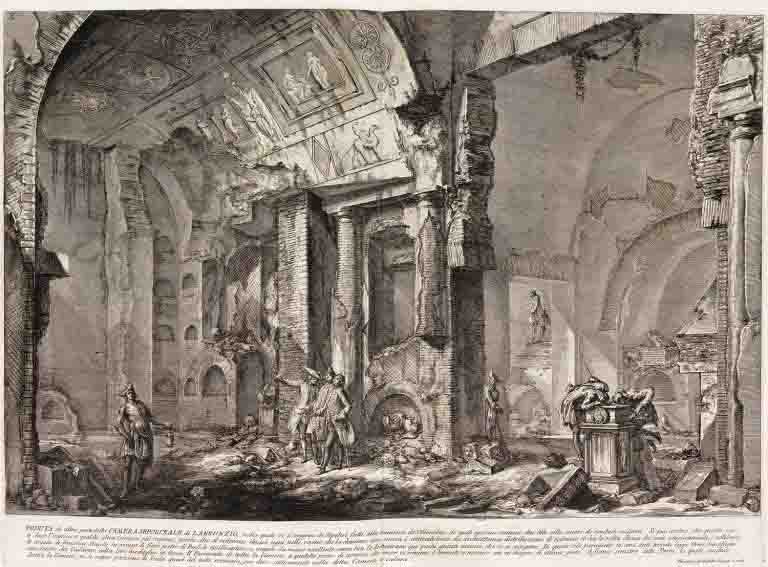 Although being a “Architectus Venetianus” he had to live away from his native Venice, for his whole career because in his own words “However much Venice was filled with magnificent palaces and paintings it was not a not a theatre capable enough of giving pastures to the sublimity of his ideas.” Thus, from an early time, the artist has found his muse, which is Rome, and with which for nearly thirty-eight years he will fill the thousand or so plates of his narrative oeuvre. His earlier works consisted of different ranges and varieties, but predominantly focused on publishing the conventional views of Rome and all its grandeurs Most people associate Piranesi with the views of Rome, which defines the views of the Eternal city even till to these days. In the more limited group of early works, governed, on the contrary, by a free architectural fantasy, and in the inspired Imaginary Prisons, where he audaciously combines elements which are Roman, will transpose the substance of Rome into the realm of the irrational.