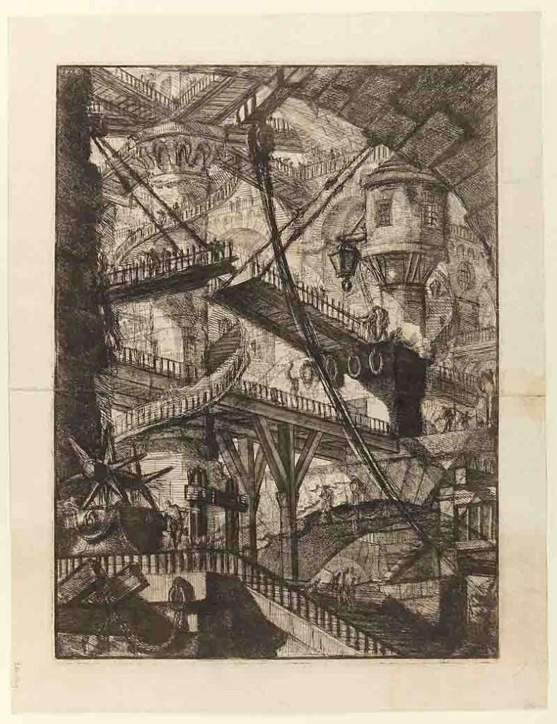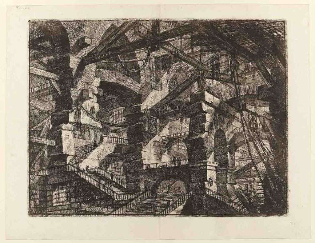 Piranesi’s brilliance always focused on prints, specifically in the explorations of reality and antiquity in a very surrealistic setting. His influences cruise through the later generation of architects and designers in a very elusive ways and there’s little doubting the lasting impact Piranesi has had, conceptually and stylistically, on so-called ‘paper architects’ including Lebbeus Woods, Raimund Abraham, the art of M. C. Escher, Brodsky and Utkin, even the hyper-tech labyrinths of Atelier Olschinsky. Even more so, anyone could make the case for there being robust traces of His imaginary prisons in the more disruptive spaces of Brutalism, Expressionism and the deconstructive movements in the contemporary architectural scene.